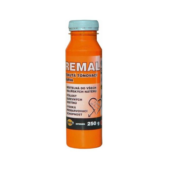 REMAL TEKUTÁ TÓNOVACIA FARBA je určená pre interiéry a používa sa k tónovaniu bielych maliarskych farieb. Farebné odtiene sú stále, majú vysokú farbiacu schopnosť. Odtiene čierna, hnedá, béžová, okrová a červenohnedá sa môžu použiť aj k zafarbeniu vodou riediteľných farieb v exteriéroch.
