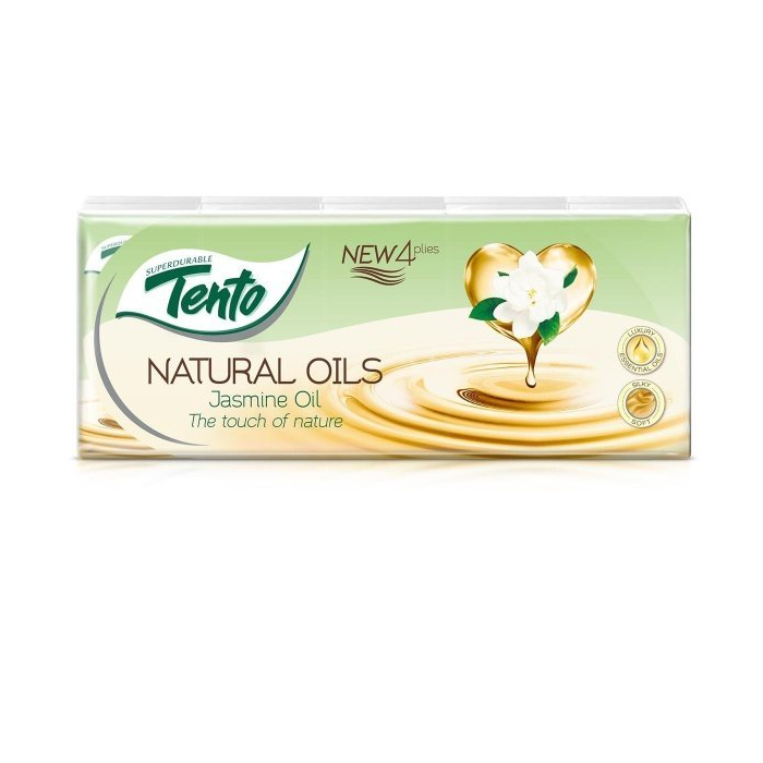 Tento Natural Oils Jasmine Oil sú 4-vrstvové vreckovky obohatené o prírodný, jazmínový éterický olej.