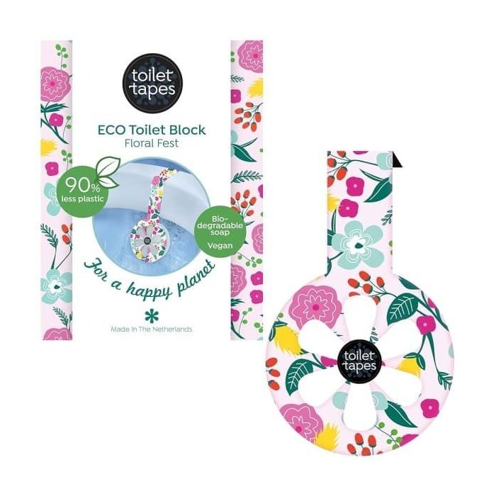 Úžasne príjemné vône a udržateľné riešenie pre vašu toaletu! Eko WC blok Toilet Tapes s vôňou Floral Fest dodáva toalete nádhernú vôňu, silnú penu a hygienické čistenie s každým spláchnutím. S dizajnom veselých a farebných kvetín zanecháva sviežu a povzbudzujúcu vôňu kvetín.
