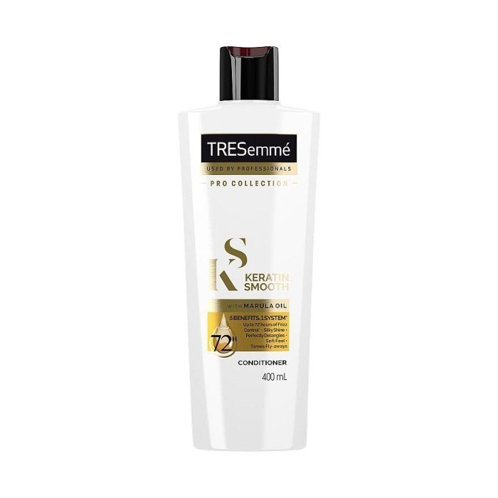 Chcete sa rozlúčiť s nepoddajnými vlasmi? Hľadáte dokonalý prípravok, ktorý uhladí a skrotí vaše krepovité vlasy? Stavte na TRESemmé Keratin Smooth. TRESemmé Keratin Smooth prichádza s jedinečnou inovačnou metódou uhladených vlasov, vďaka ktorej zažijete až 72 hodín bez nepoddajných vlasov. Obsahuje keratín a africký marulový olej.