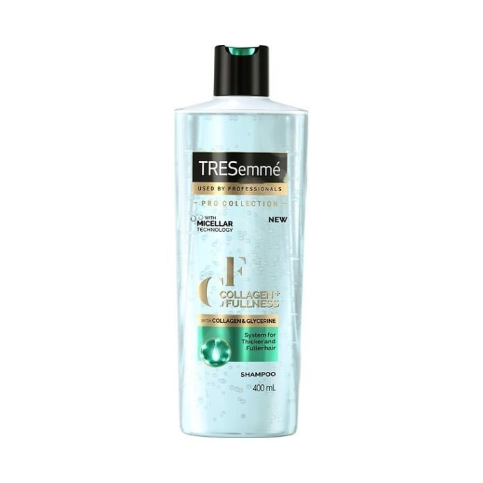 Obnovte silu a krásu svojich vlasov s produktami TRESemmé! Šampón pre objem vlasov Collagen + Fullness je jedinečný v tom, že zanecháva vlasy viditeľne hustejšie a objemnejšie. Receptúra s kolagénom a glycerínom obnovuje a posilňuje vlasové vlákno. Micelárna technológia sa postará o sviežosť a čistotu vlasov. Vlasy ostávajú objemné a pripravené na vytvorenie nadýchaného účesu. Celá línia je parfumovaná krásnou, osviežujúcou vôňou. S líniou TRESemmé Collagen + Fullness dosiahnete väčšiu hustotu svojich vlasov.