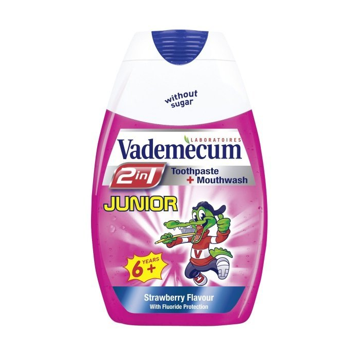 VADEMECUM 2v1 junior detská zubná pasta pre deti od 6 rokov s príchuťou jahody 75ml