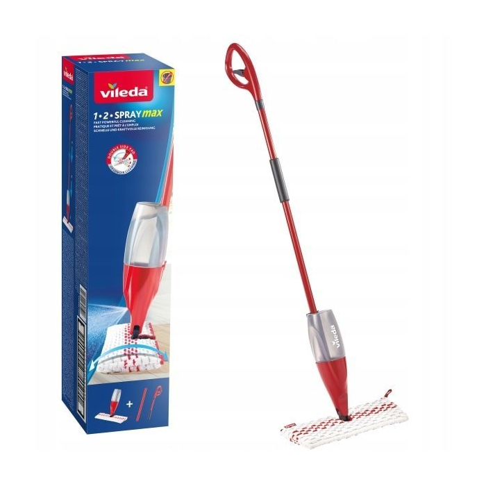 Vileda 1.2 Spray max mop je lepší a rýchlejší spôsob čistenia podláh! Pri príprave na čistenie, alebo naopak pri uskladňovaní naplňte nádržku vodou a jednoducho rozstreknite. Môžete skladovať s plnou alebo prázdnou nádržkou. Uľahčite si upratovanie! Nový sprejový mop s obojstranným umývacím návlekom od značky Vileda zaručuje ľahšie upratovanie - nie len kvôli tomu, že šetrí čas v porovnaní s inými sprej mopmi, ale odstraňuje aj viac ako 99% baktérií len za pomoci vody.