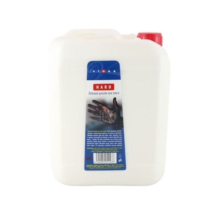 Tekutá pasta na ruky Vione HARD obsahuje jemne mletý vápenec ako prírodné abrazívum, ktoré účinne odstraňuje odolné nečistoty – oleje, tuky, atrament, sadze či mazivá.