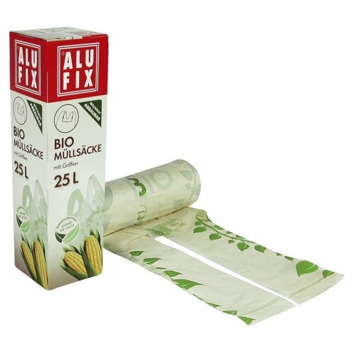 Organické odpadkové BIO sáčky vyrobené z kukuričného škrobu sú vyrobené z obnoviteľných surovín. Možno ich kompostovať. Organické odpadkové sáčky ALUFIX sú biologicky odbúrateľné a kompostovateľné podľa európskej normy pre kompostovatelnosť.