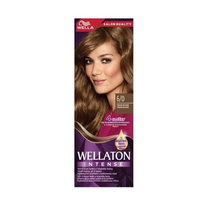 Túžite po farbe vlasov ako od kaderníka? Doprajte si farbenie v pohodlí domova! Wella prichádza s radom Wellaton, v ktorom nájdete širokú paletu odtieňov od blond po červenú. Krémová farba na vlasy Wellaton Intense v odtieni 6/0 tmavá blond sa môže pochváliť jednoduchou aplikáciou na vlasy. Farba vydrží až 8 týždňov, 100 % perfektne kryje šediny a postará sa o komplexné zafarbenie celej dĺžky vlasov. Hydratačná kúra s arganovým olejom dodá vlasom potrebný lesk a hebkosť. Pre intenzívne a dlhotrvajúce výsledky sú tu farby na vlasy Wellaton!