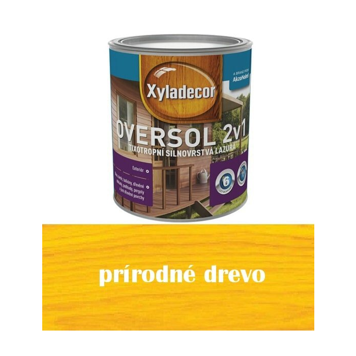 Xyladecor Oversol 2v1 je tixotropná silnovrstvá lazúra na báze rozpúšťadiel určená na použitie v exteriéri. Chráni drevo pred poveternostnými vplyvmi a UV žiarením. Vytvára silný, elegantne polomatný film na povrchu dreva. Vďaka tixotropnej konzistencii nesteká a uľahčuje aplikáciu.